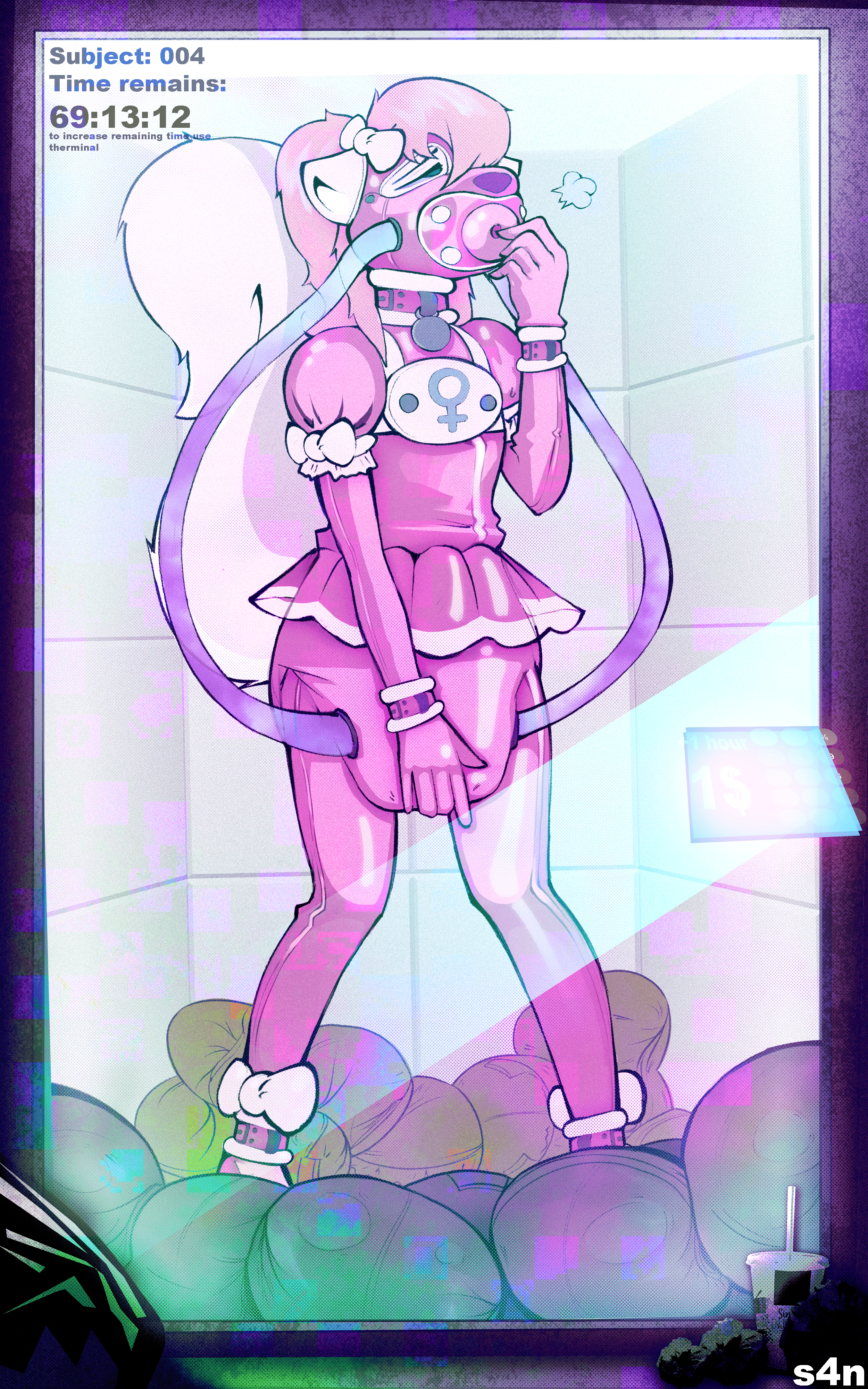 I like art that shows the submissive struggling in a predicament, or other silly, tied-up situation.